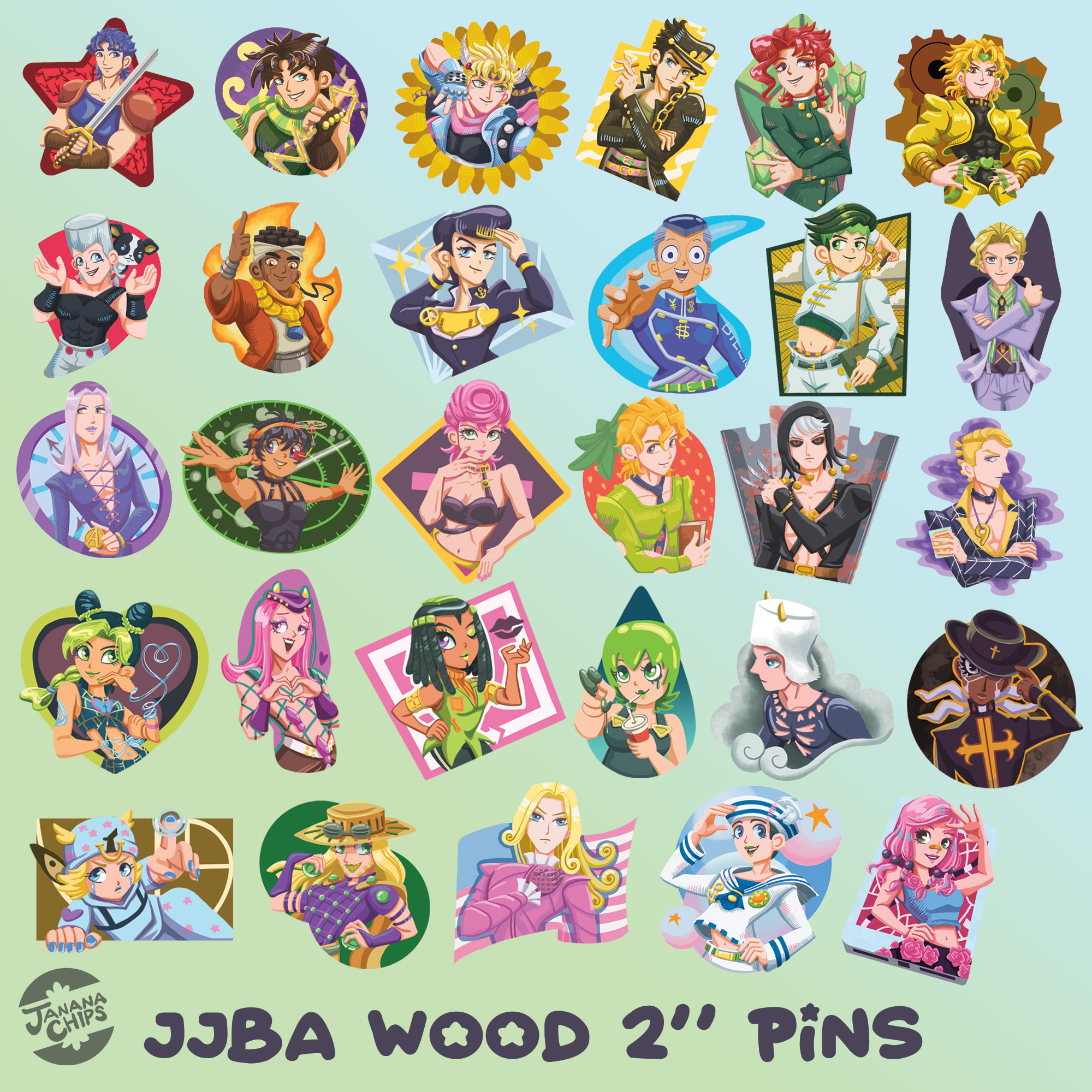 | Character | Buy 2 $20, Jonathan, Joseph, Caesar, Kakyoin, Dio, Avdol, Polnareff, Jotaro, Josuke, Okuyasu, Rohan, Kira, Abbacchio, Narancia, Fugo, Risotto, Trish, Prosciutto, Jolyne, FF, Ermes, Anasui, Weather Report, Pucci, Johnny, Gyro, Funny Valentine, Gappy, Yasuho |